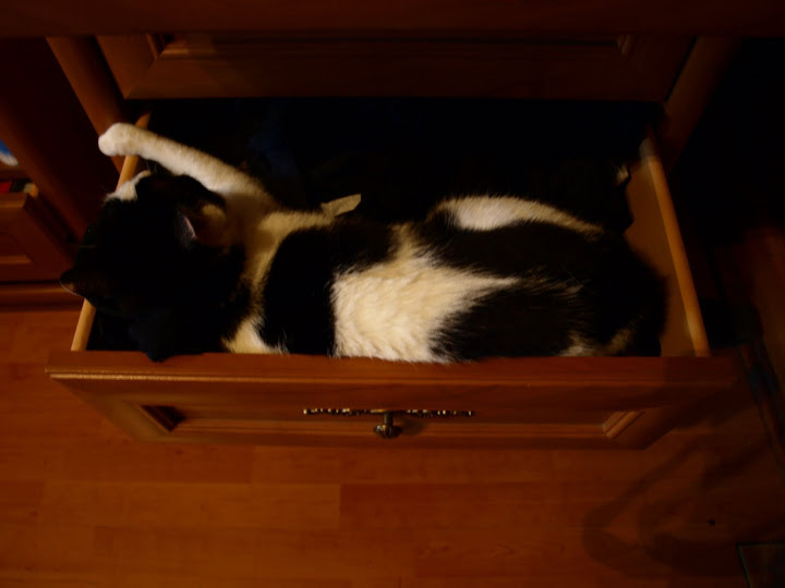 a mój uwielbia spać na czarnych skarpetkach w szufladzie