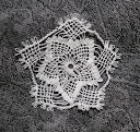 Znowu robię wprawki w koronkach palestyńskich. Motyw pięciokątny trochę się niestety sfałdował. Trudno nad tymi pętelkami zapanować, to wszystko kwestia wprawy, a je się wolno robi: