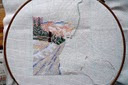 No i pomalutku robię zimowy obrazek, który zaczęłam już dość dawno, jak jesień skończyłam, potem rzuciłam w kąt, bo haftowanie biało-burego śniegu było nudne, ale doszłam już do drzew i różnych kolorków, to mi się humor poprawił: